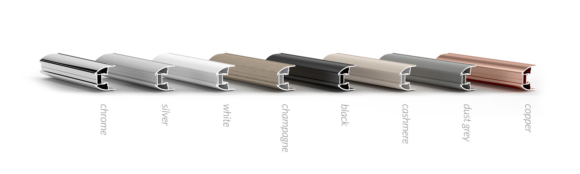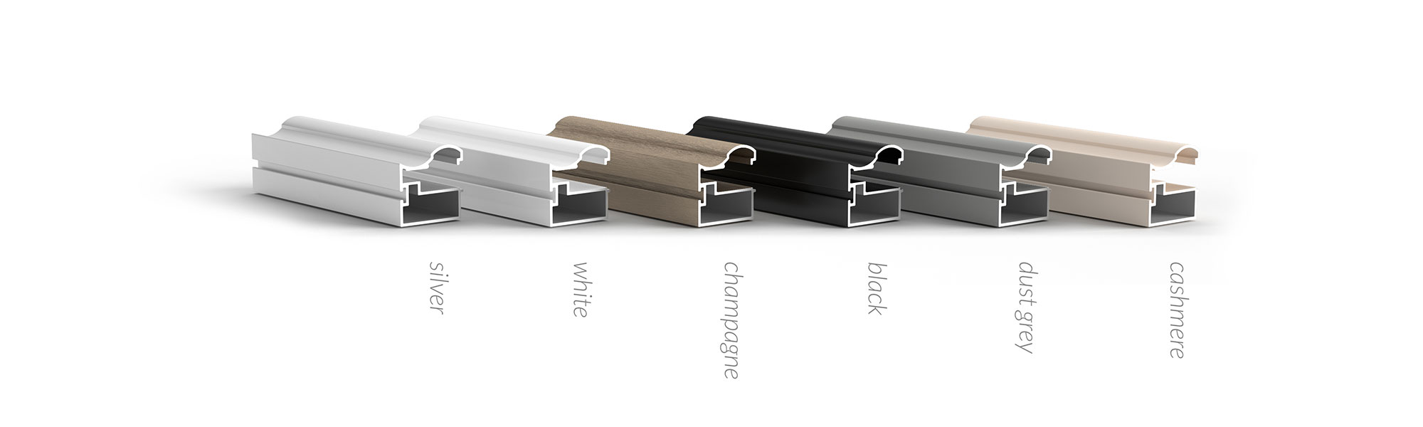 The Express range features a lightweight aluminium bottom-roller system, available in silver or white frames with matching tracks, suitable for doors up to 1070mm wide, and installations up to 2490mm high and 4000mm wide.